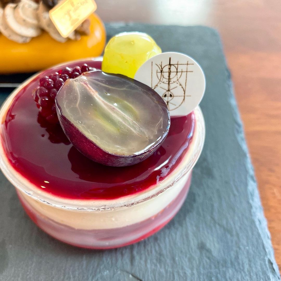 キール・ア・ラ・ミュールは2色の葡萄とブラックベリー、ソースもブラックベリーのずっしりした甘み。クリームの下の層はサバランのようにひたひたのスポンジで、フルーツ、スポンジ、クリームの組み合わせがとっても口当たりよく、気に入りました。シューグルマンは前回も紹介したものですね。