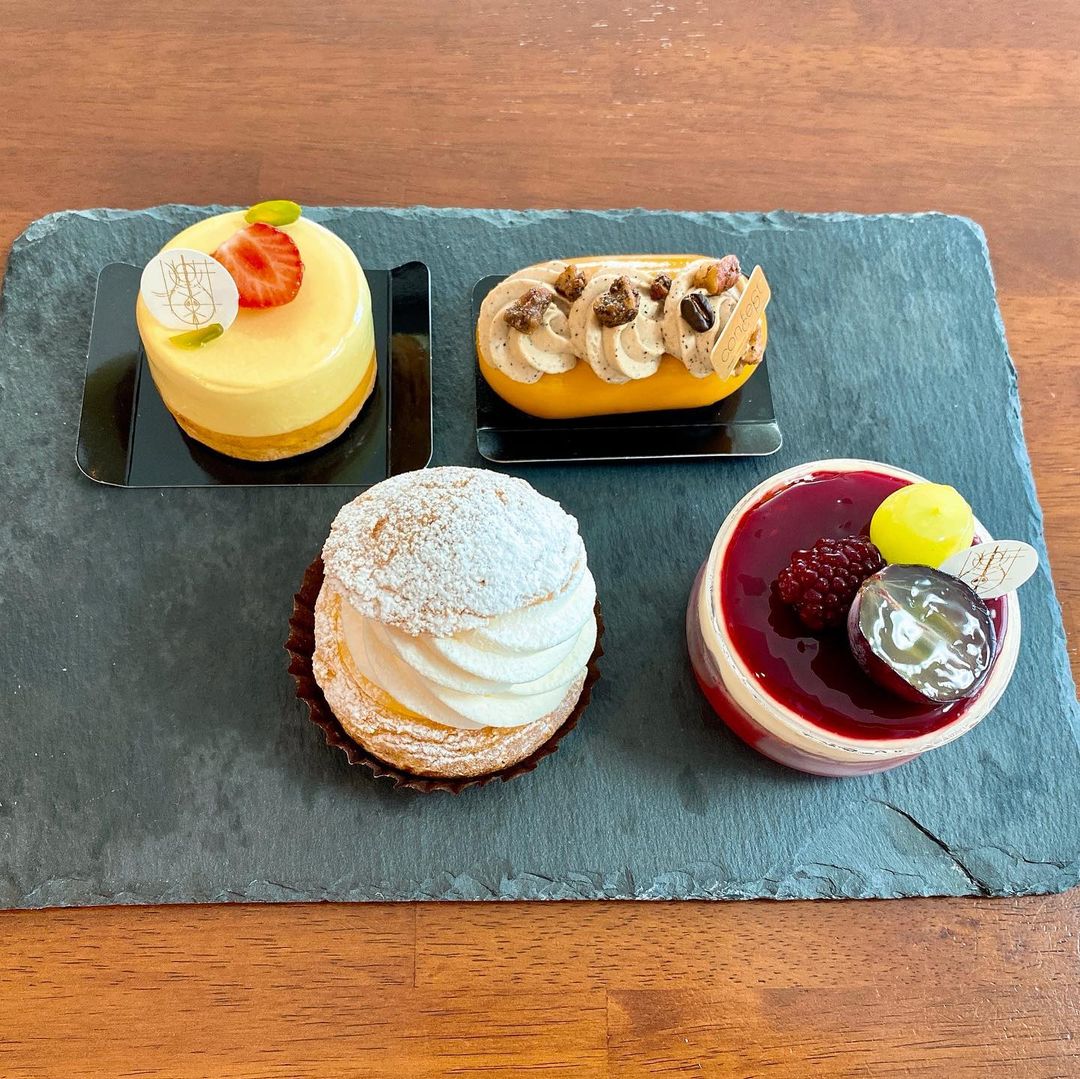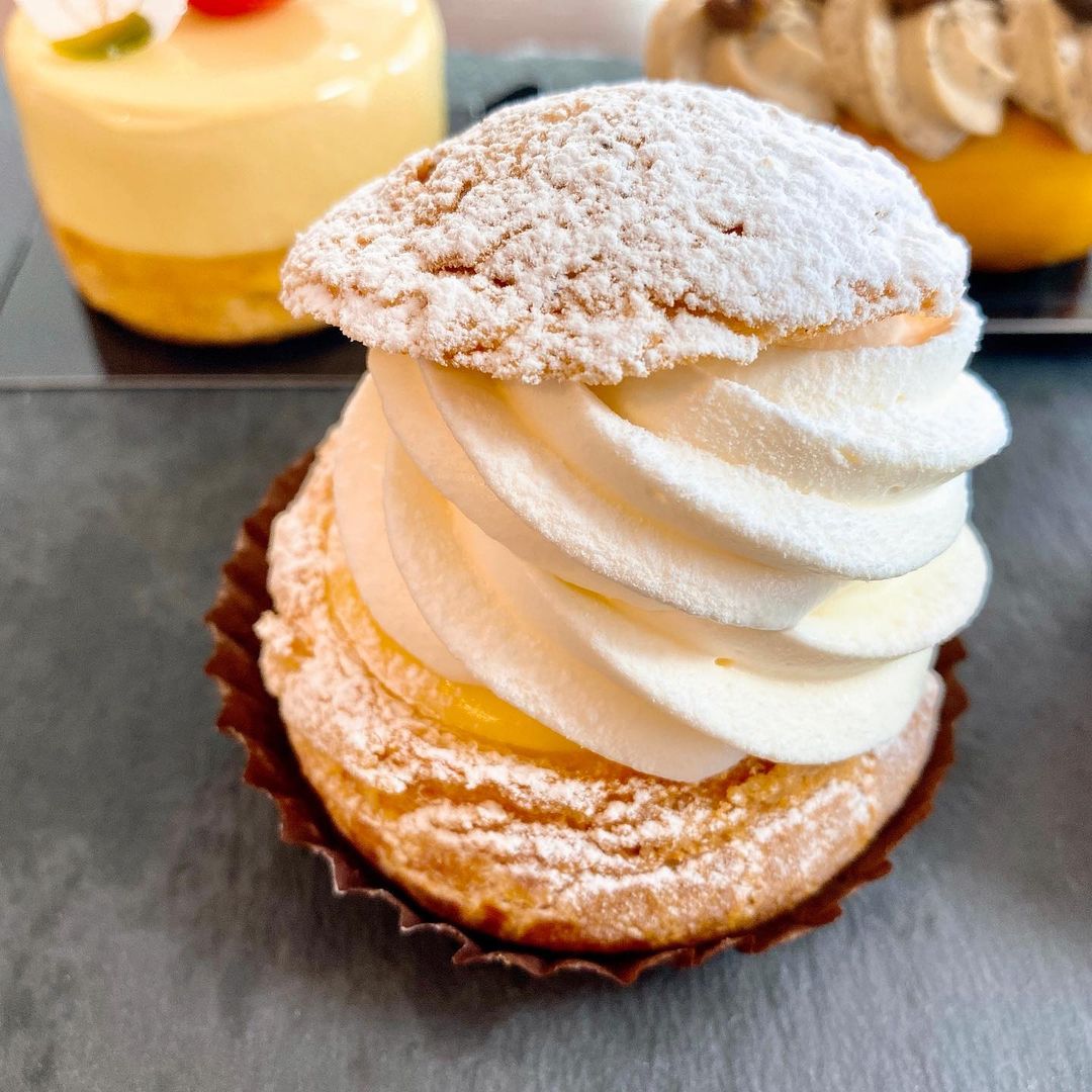 浅草の洋菓子店、コンフェクトコンセプトのシューグルマンとキール・ア・ラ・ミュール(左から)