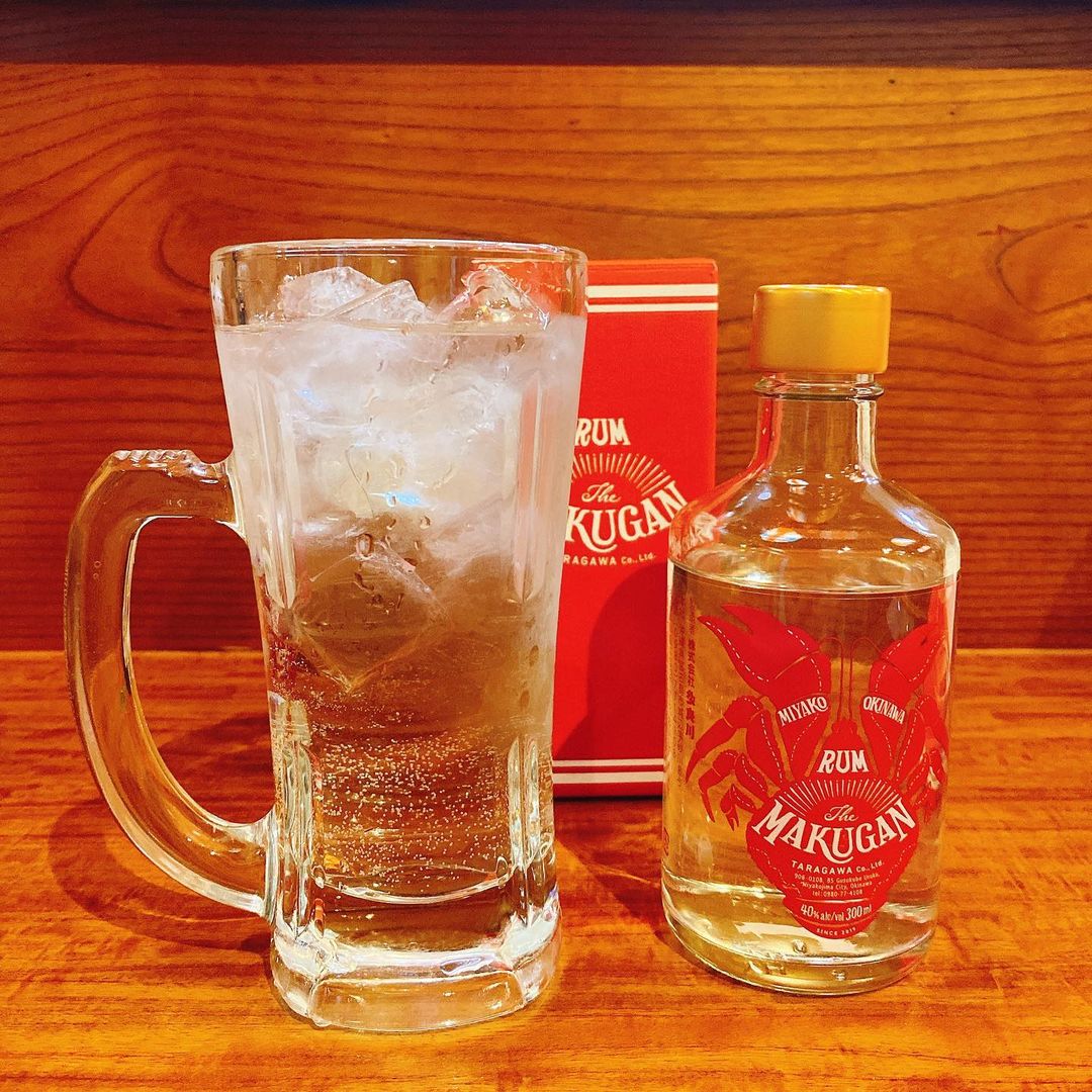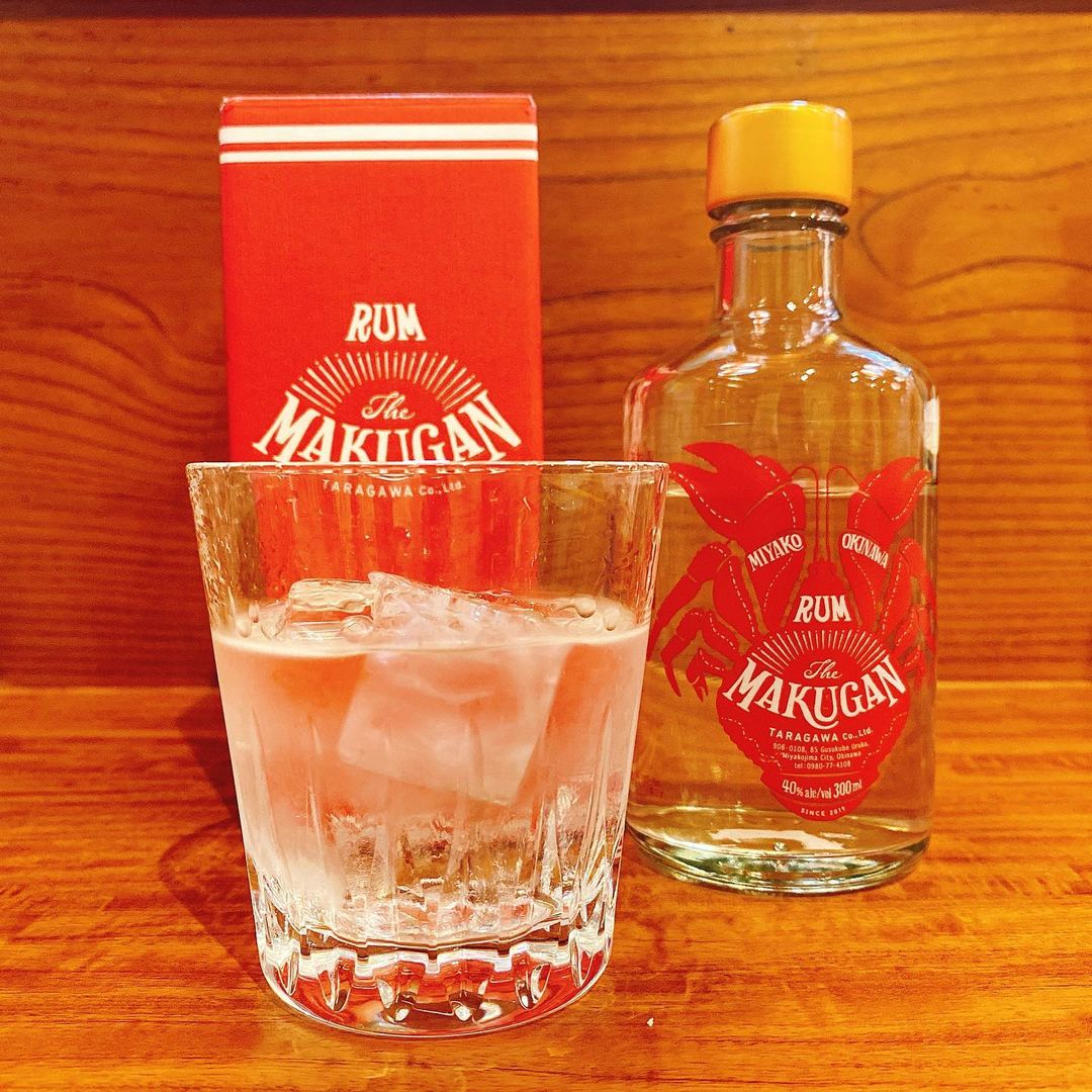 カウンターに飾ってあるロブスター?のようなラベルのボトルをよくよく見ると、これはラムなんですね。しかも沖縄は宮古島産のラム、Makugan。ラムが好きなので頼んでみました。ソーダ割でいただいたのですが、香りはまるっきり焼酎や泡盛のような香り!その後、どうしてもそのものの香りと味を見たくてロックで注文。材料は同じサトウキビなのに、こうも変わった風味になるんですね。