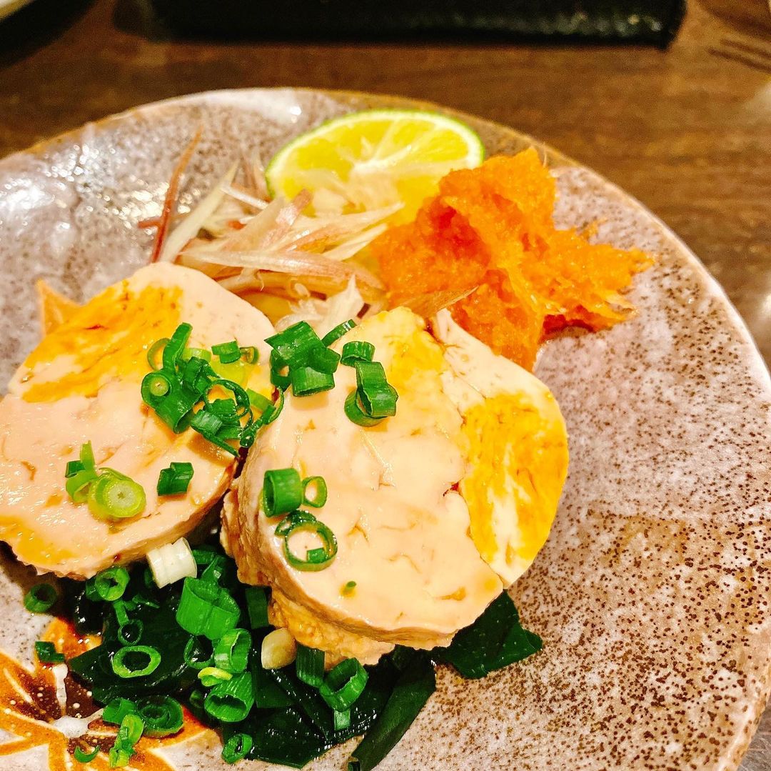 日本酒はいつもよく飲む醸し人九平次。軽く1杯のつもりだったのに、他のテーブルから振る舞い酒もいただきました。町田酒造 美人錦55 特別純米にごり生酒、まろやかで鋭い甘み。しかし、店で日本酒を飲むというのが本当に久しぶりという感じがしますね…!