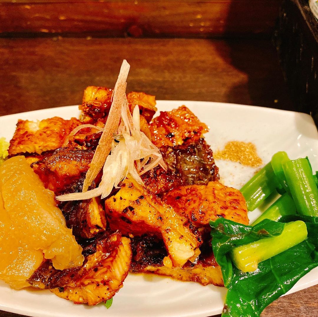 久しぶりにほぼ大将の顔を見るために軽く寄ってみたんですが、せっかくカウンターに座ったので日本酒のアテにあん肝ポン酢、おつまみ鰻の蒲焼とわりとがっつりめのおつまみを。カレーも頼みましたが、これは今回もトマト煮込みと一緒にテイクアウト。