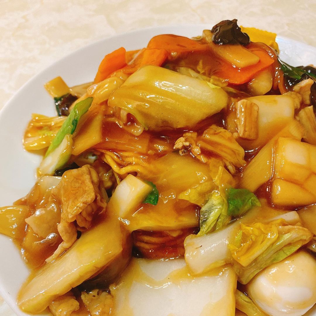 同行者はあんかけ焼きそばを注文しました。このお店ではこれがもっとも定番の料理らしく、隣の席に座っていた二人組はどちらもあんかけ焼きそばを食べていました。あんかけ焼きそばってテイクアウトで温めなおしても変わらず美味しく食べられるのもいいですよね。