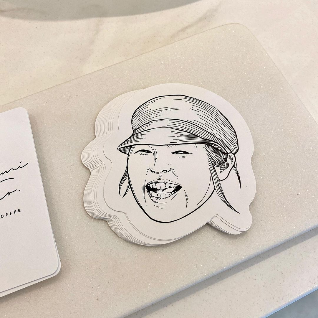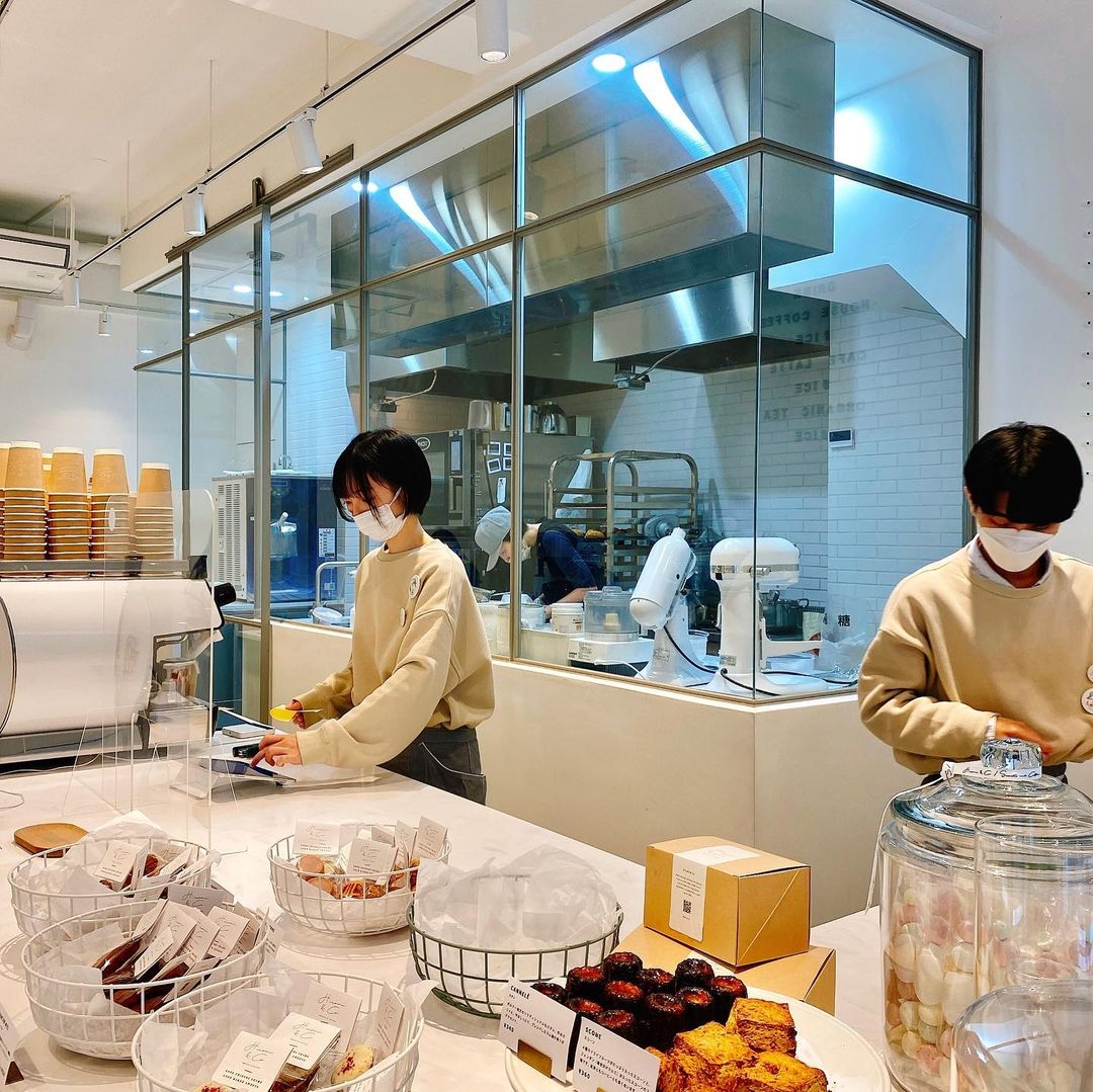 オープン当初からタイミングが合えば寄っていたんですが、今回はしばらくぶり。以前はお2人で菓子作りも接客もこなしていたのが、フレッシュなスタッフが増えていてびっくり。制服もかわいらしく、お店のイメージにぴったりですね。店主の似顔絵ショップカードもありました。