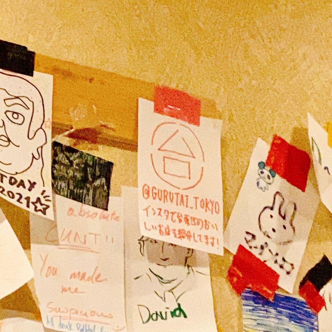「あやしくないかふぇば〜」という怪しげな看板を掲げている店に入ってくる人たちは皆人懐っこさが過ぎる。来る人来る人積極的に話して行く、社交場といった雰囲気です。新宿のゴールデン街からやってきた店主の店らしく、新しいのに古い、古いのに新しい、面白い店。店内には所狭しと客の貼った張り紙が貼られているので、Gurutaiの宣伝も貼ってみました。