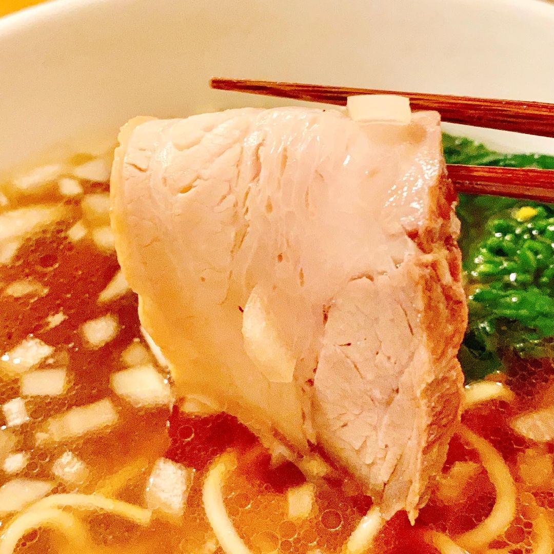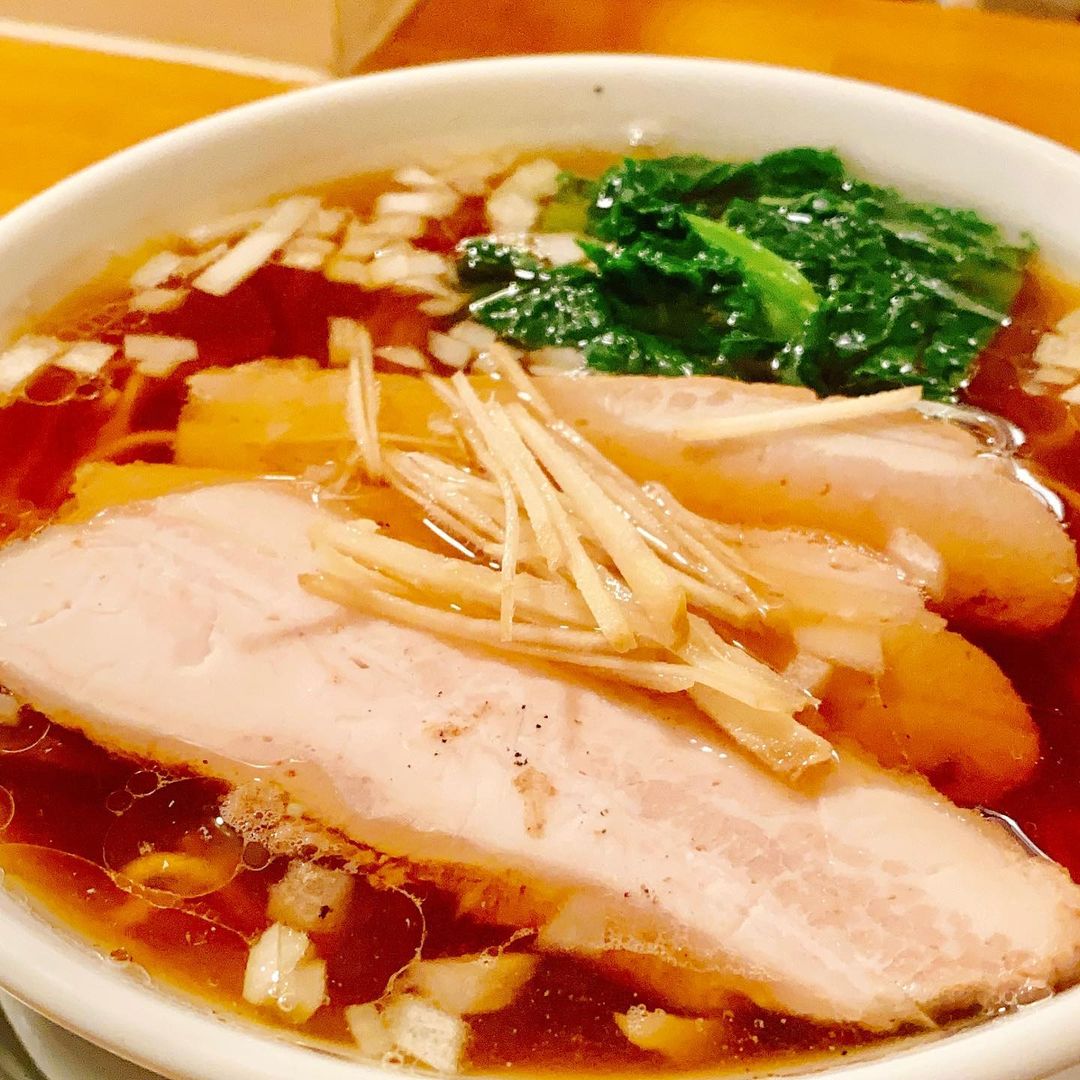 麺は浅草開花楼、生姜の香りたっぷりの醤油ラーメンです。具と麺をひっくり返してチャーシューを溶かすのがオススメと言われ、そうして食べました。天地返しってやつですね!脂身の多いチャーシューがトロトロになり、スープと生姜の風味と脂身の組み合わせが混ざり合います。
