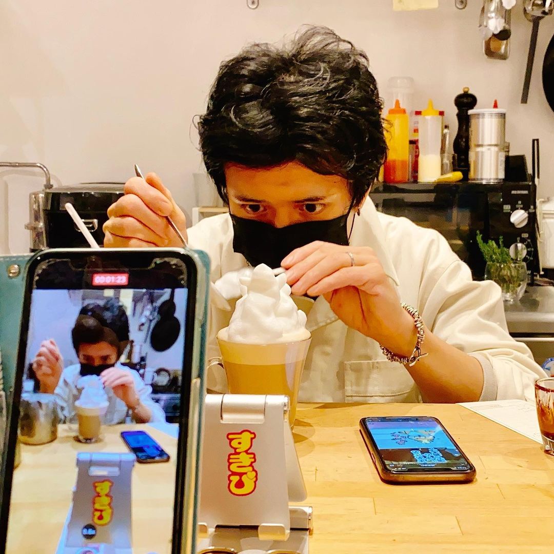 連れてきた友人はチャイティーラテで3Dラテアートを注文しました。好きなLINEスタンプをモチーフに注文していたのですが、店主の松野さんは毎日ものすごい数のラテアートを作っているので、大抵のものは「それも描いたことありますよ」と余裕で注文を受けてくれます。