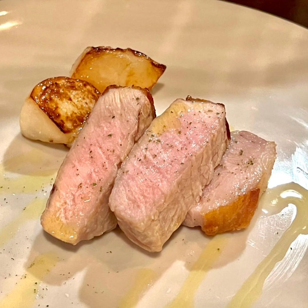 他には前菜のトリッパとキャベツの煮込み、ピエンノロトマトのパスタ。そしてこのコースは前菜とパスタのみであるため、追加で肉料理を注文しました。しばらくぶりなので、定番のどろ豚のロースト。少なめのコースがあるのはとてもありがたいですね。しかしもちろん、結局追加するのならコースの方がコスパはいいです。