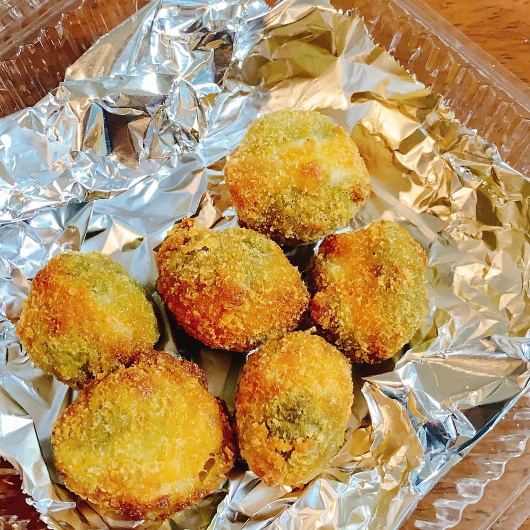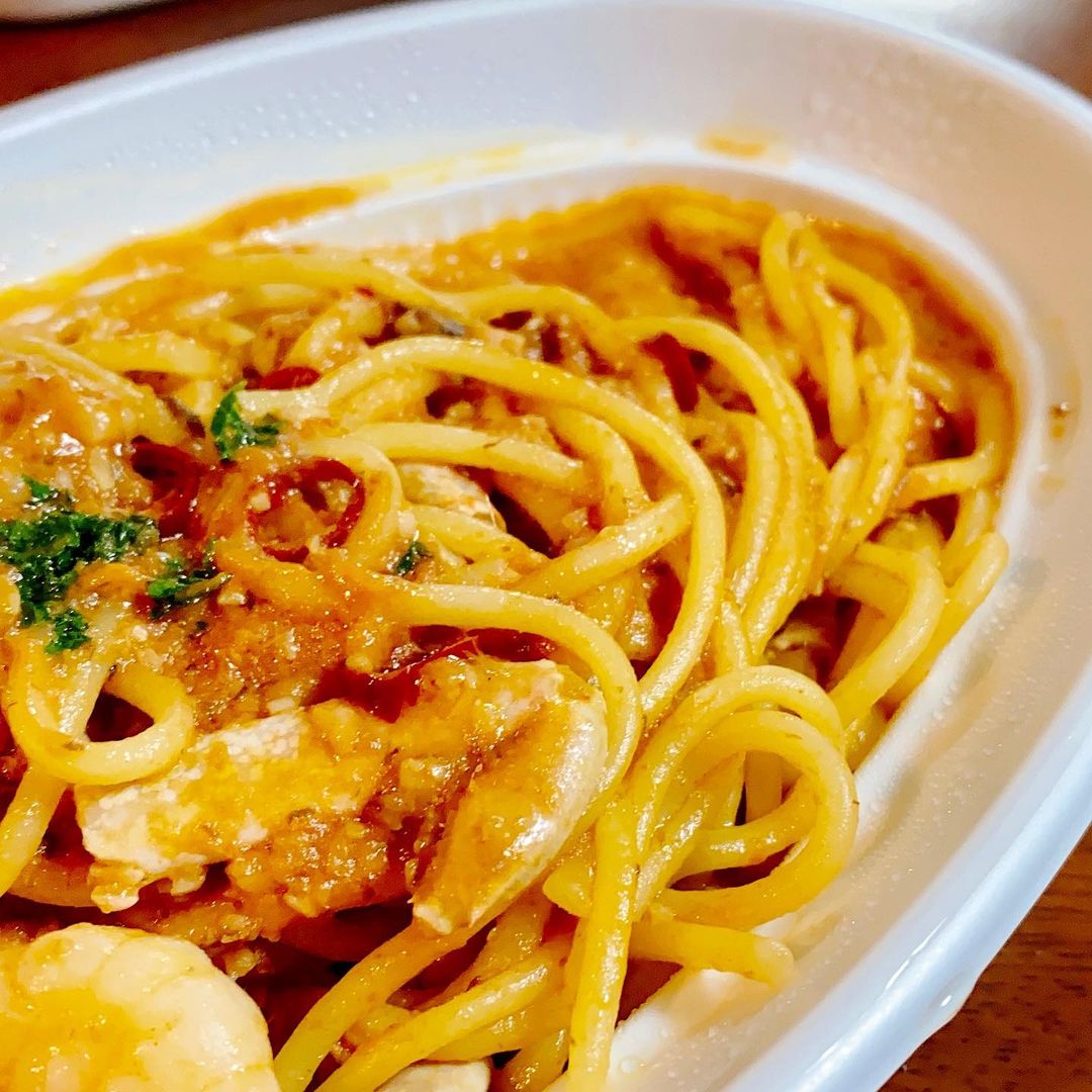 他に、オリーブの肉詰め、水牛のモッツァレラチーズと完熟トマトのカプレーゼも注文しました。このお店はおつまみもパスタも肉料理もかなり種類が多く、掘り下げがいのある印象なんですが、前回も刻み海苔のかかったパスタが食べたい!と思って食べに行ったのにも関わらずまた同じものを注文してしまいました。
