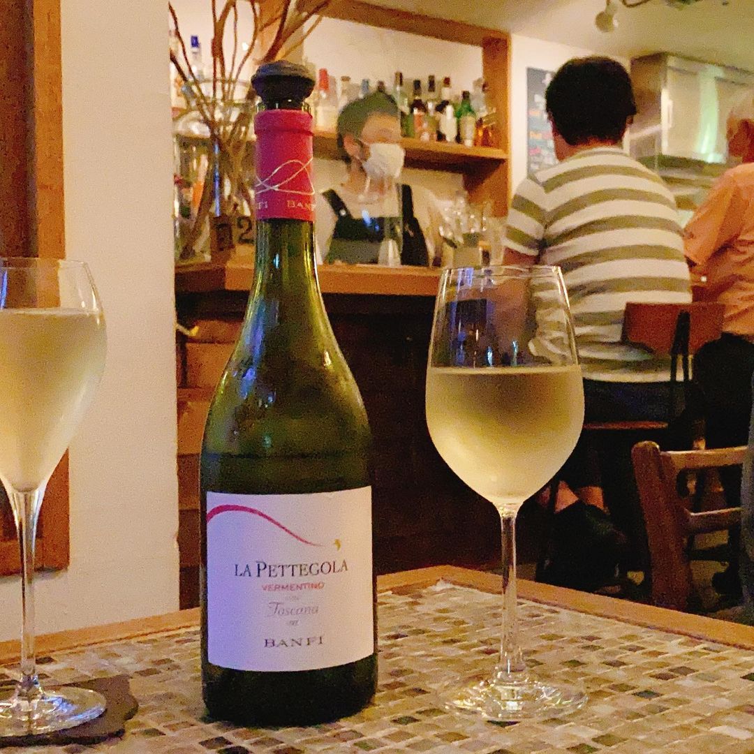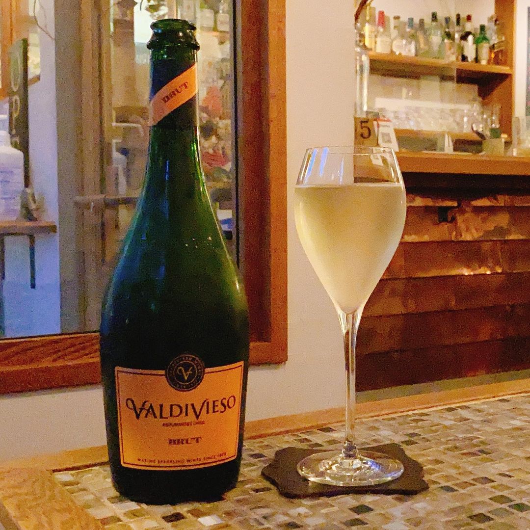 お酒はチリのスパークリングワイン、バルディビエソ ブリュットと白、ラ・ペテゴッラ バルディビエソ ベルメンティーノ。とうもろこしのパスタにはスパークリングワインがよさそう。夏って感じの組み合わせですね!