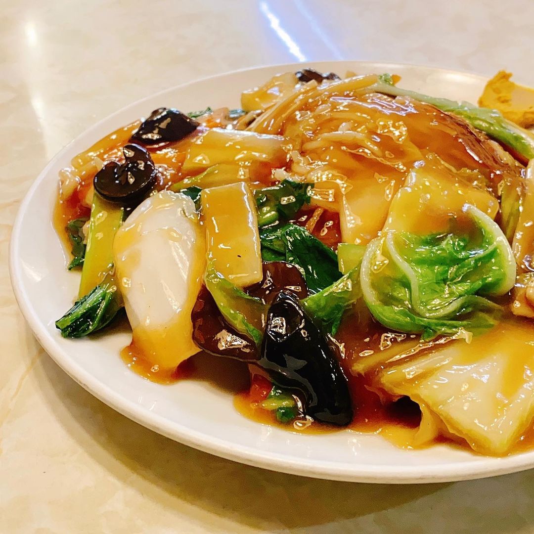 同行者は定番のあんかけ焼きそばです。あんかけ焼きそばは冷麺と違って具材がモリモリですね。