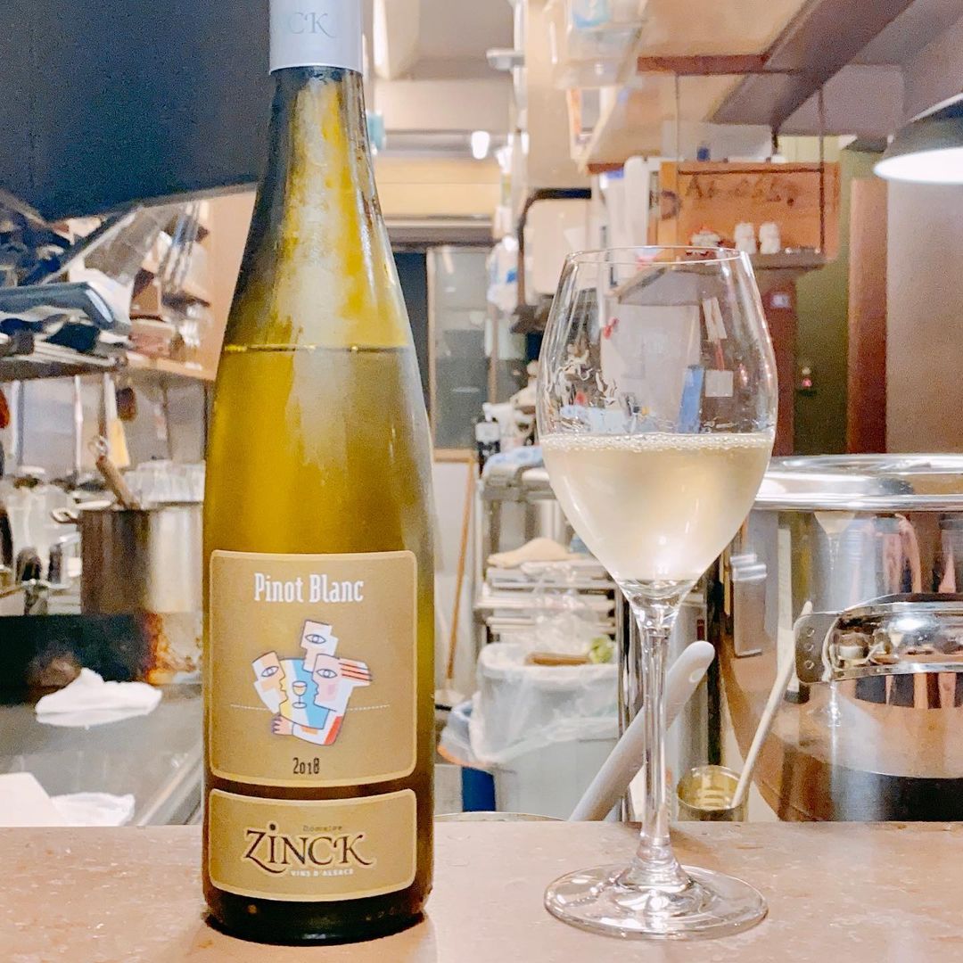もう1杯白を、これはドメーヌ・ジンク ピノ・ブラン 2018。こちらは樽感が感じられるもともと好みの感じで、どれが1番好きかと言われたらこれだったんだけど、新しい扉を開いてくれるようなワインにも注目したいので1枚目はミュスカデに。