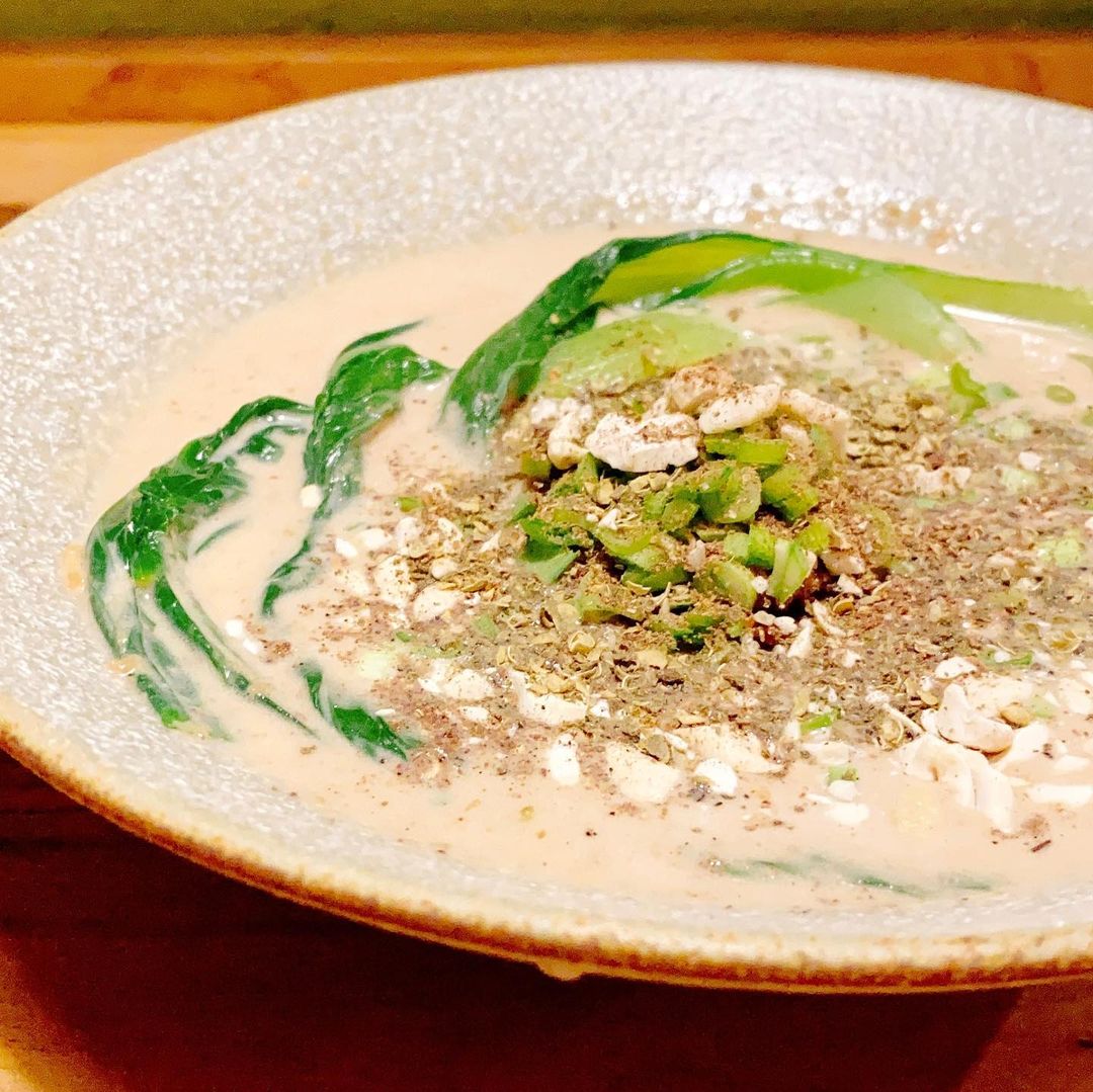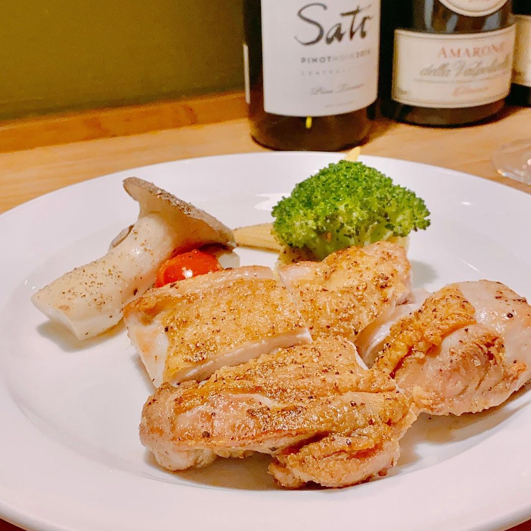 おつまみとして総州古白鳥のソテーと冷やし坦々豆腐。カリッと塩辛く焼いた皮目とジューシーで旨味のある鶏肉。いつもならチューリップを食べるところだけど、これもなかなかいいですね。冷やし坦々は麺を切らしていたようなので豆腐にかけていただきました。