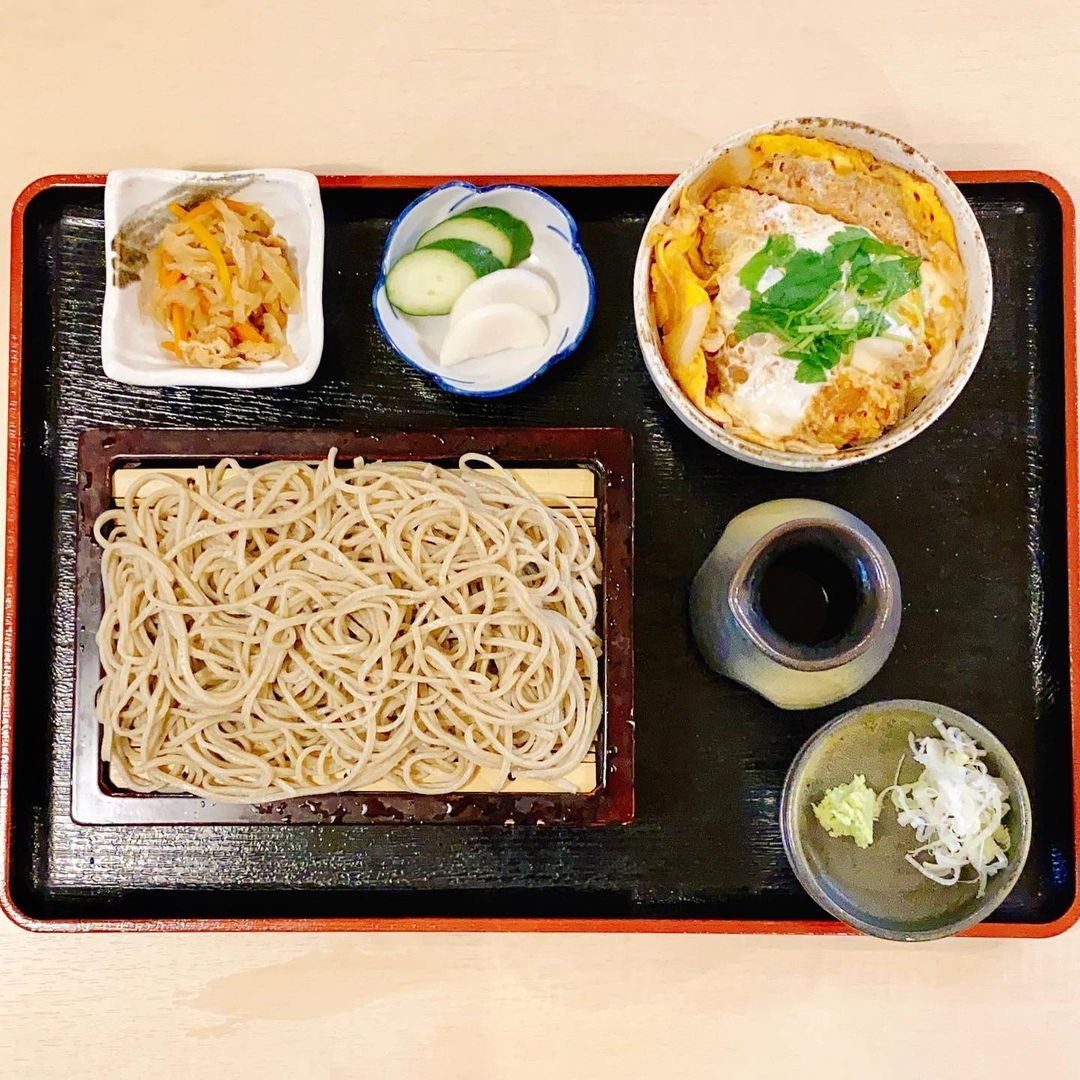 以前来たときには蕎麦の食べ比べセットを食べるぞ!と思っていたのに、カツ丼の魅力に抗えずまたカツ丼セットを注文。今回の蕎麦はザラッとした食感が強めの二八蕎麦で、前回食べたツルッとした麺とはまた違った魅力がありますね。