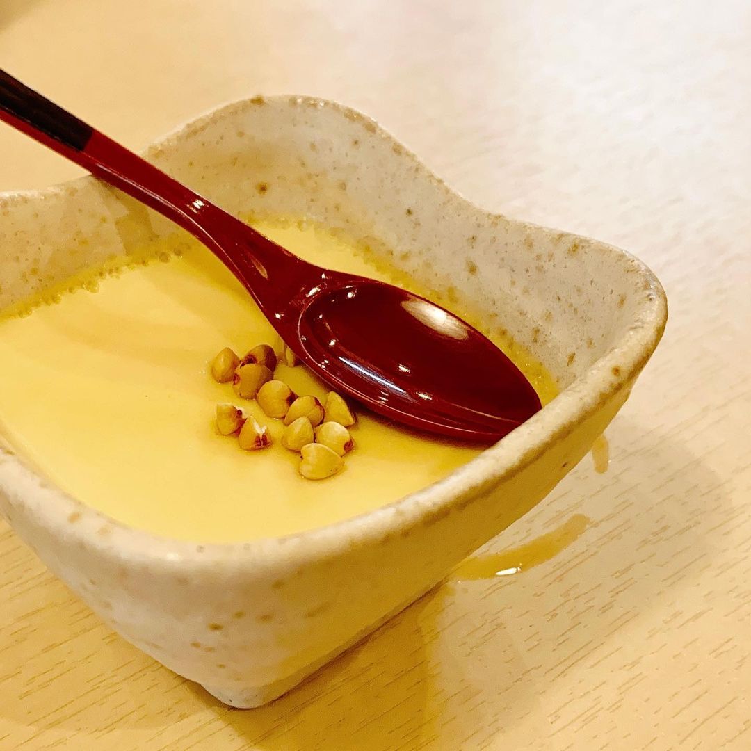 お通しの蕎麦前、かつ丼、食後のそば粉を使ったプリン。同行者は若鶏南蛮せいろ蕎麦を注文していました。酒は鍋島 純米吟醸 きたしずく、米の旨み、酒の辛みや甘みもしっかり感じる酒。九州に行く予定の直前だったため、佐賀県の酒らしいこちらをいただきました。