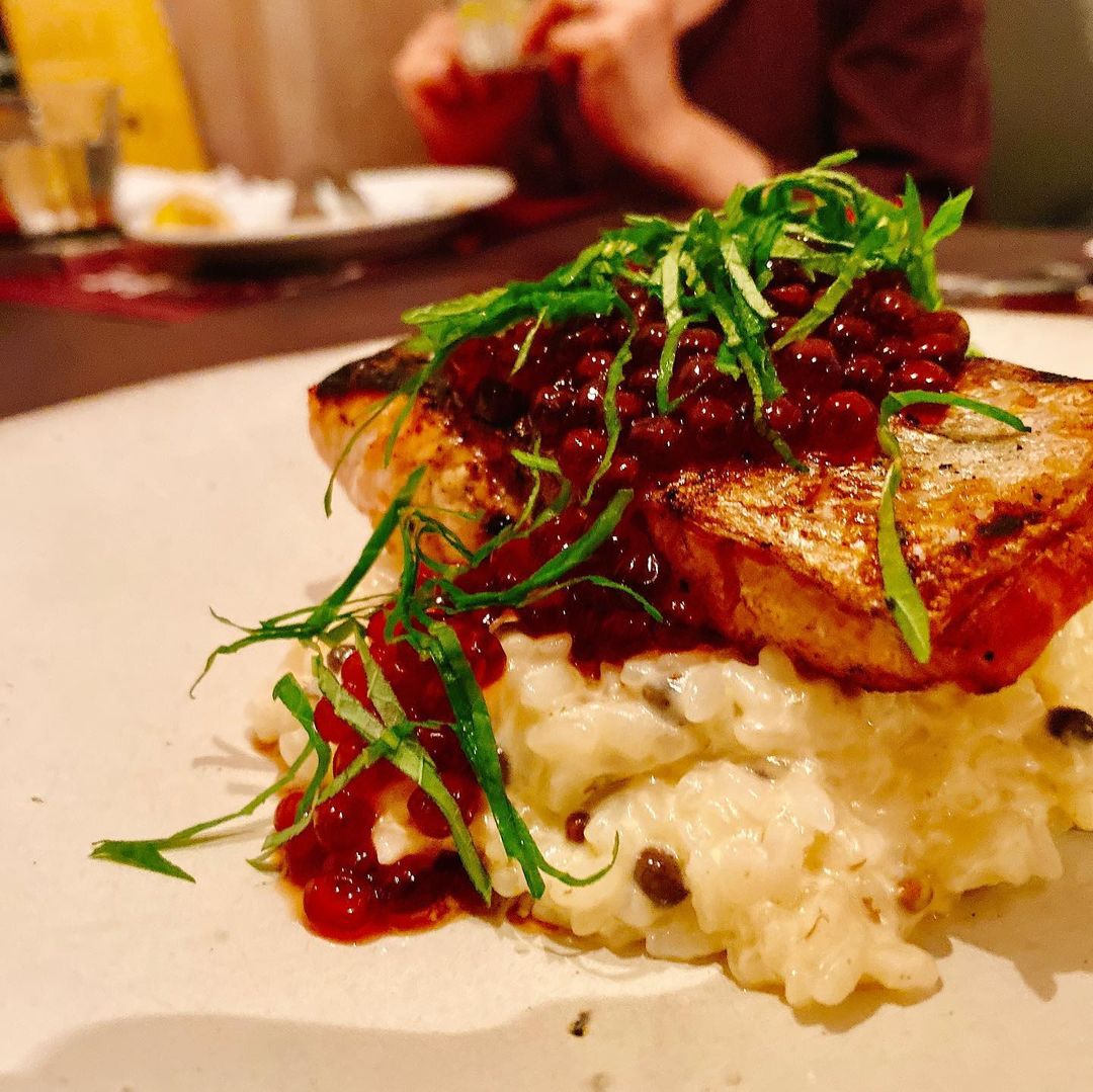その他、群馬優味ポークのシャンピニオンデュクセルソース、北海道秋鮭(銀聖)の炭火焼きといくら 山椒のリゾット、写真はないですが北海道新秋刀魚の炙りカルパッチョ 焼きなすのマリネとセルバチコ、北海道真鱈白子のムニエル 柚木ポン酢バターソースを注文しました。久しぶりに沢山の料理を堪能。