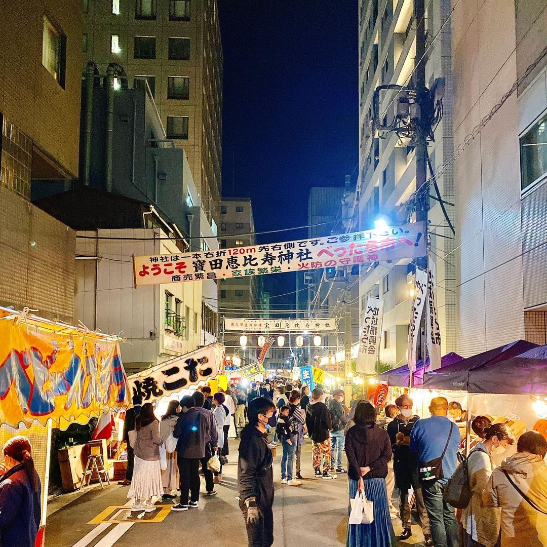 前の投稿の通り、もともと馴染みのなかった祭ですが、Hiromi&co.の店主のお陰で知ることができました。祭りの規模は大きく、宝田恵比寿神社を中心に縦横3本の通りにわたるエリアに出店が並びます。Commissary Nihonbashiの辺りにも出店が並び、祭の一部になっていました。