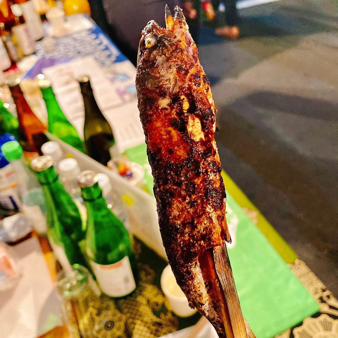 うねうねとした鰻に串を打った食べ歩きもできる鰻料理ですね。まさかお祭りで鰻を食べられるとは思わず、見かけてすぐに列に並んでしまいました。タレはどちらかというとあっさり、カリッとした表面とふっくらとした中身。1本600円です。祭の出店も好きだけど、地域の店が出店を出しているのがいいですね。
