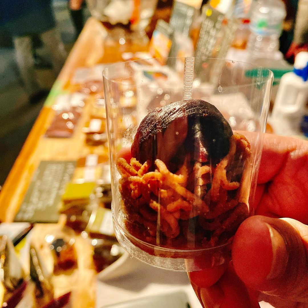 神田の和食居酒屋、箕と環のアマゴの塩焼きと、隣の日本酒、神渡の出店の神渡 純米辛口。アマゴは蓼酢をつけて食べます。べったら漬けもオマケしてもらいました。他、写真はありませんが、近隣の企画会社 ハートフルクリエーションの出店で赤ワイン、アドリア ロッソを飲み、更に隣の季果貴の出店でミニモンブランをいただきました。季果貴は隅田川流域のイベント、隅田川マルシェにも出店していて、以前利用したこともあります。