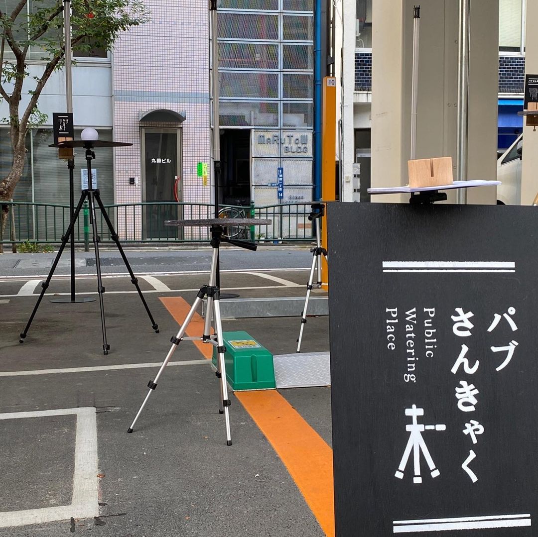 もう1つ、高架下ではJR東日本都市開発が取り組む高架下活用のスペースがあり、そこでは三脚をテーブルに見立てたような空間がありました。高架下に通りかかった人、コーヒーを手に持つ人が座ってゆっくりできる場所があったらいいかもしれません。