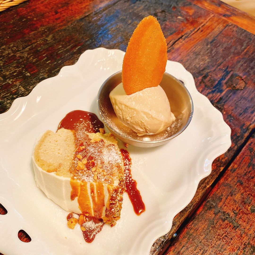 ランチセットは以前も紹介したことがありますが、サラダとスープで今回サラダを選択。これで1000円…のはずなのですが、唐辛子の香りに負けて白ワインを追加注文。また、このお店ではスイーツも食べたかったので、たまたまショーウィンドウで見たズコットも追加で。