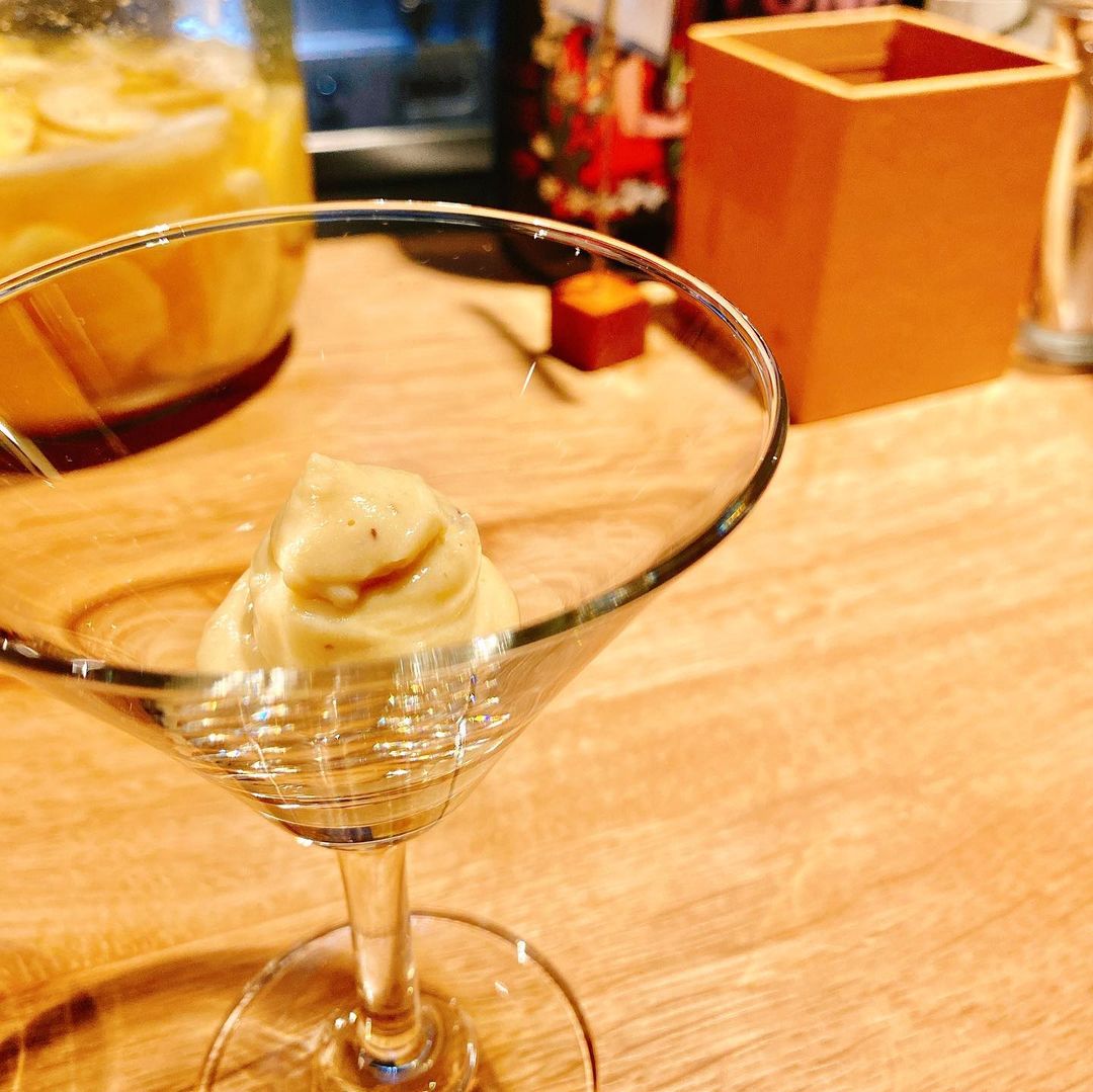 アミューズとして出てきたさつまいものヴェリーヌ、そしてウフマヨ。酒は自然派ワインの店ということでワイン、前回も飲んだエロスからの赤、マンカ デル ロッソ、エンジョイ 2019 ナナ ロッソ。今回は酒も食事もしっかりと味わいたかったのでゆっくり楽しみました。