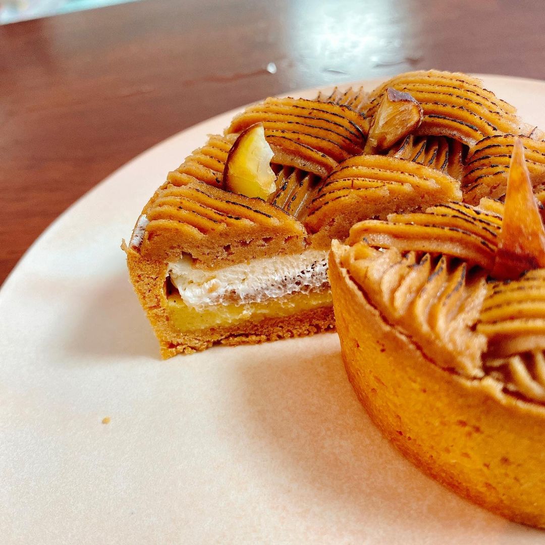 縫い上げたような美しいモンブランクリームを、更に表面を炙ることで立体感を出すとともに、普通のモンブランでは味わえないような焼き栗感のある風味も作り出しています。炙りたても食べてみたいところ。中身はカスタードのような土台と生クリームになっています。