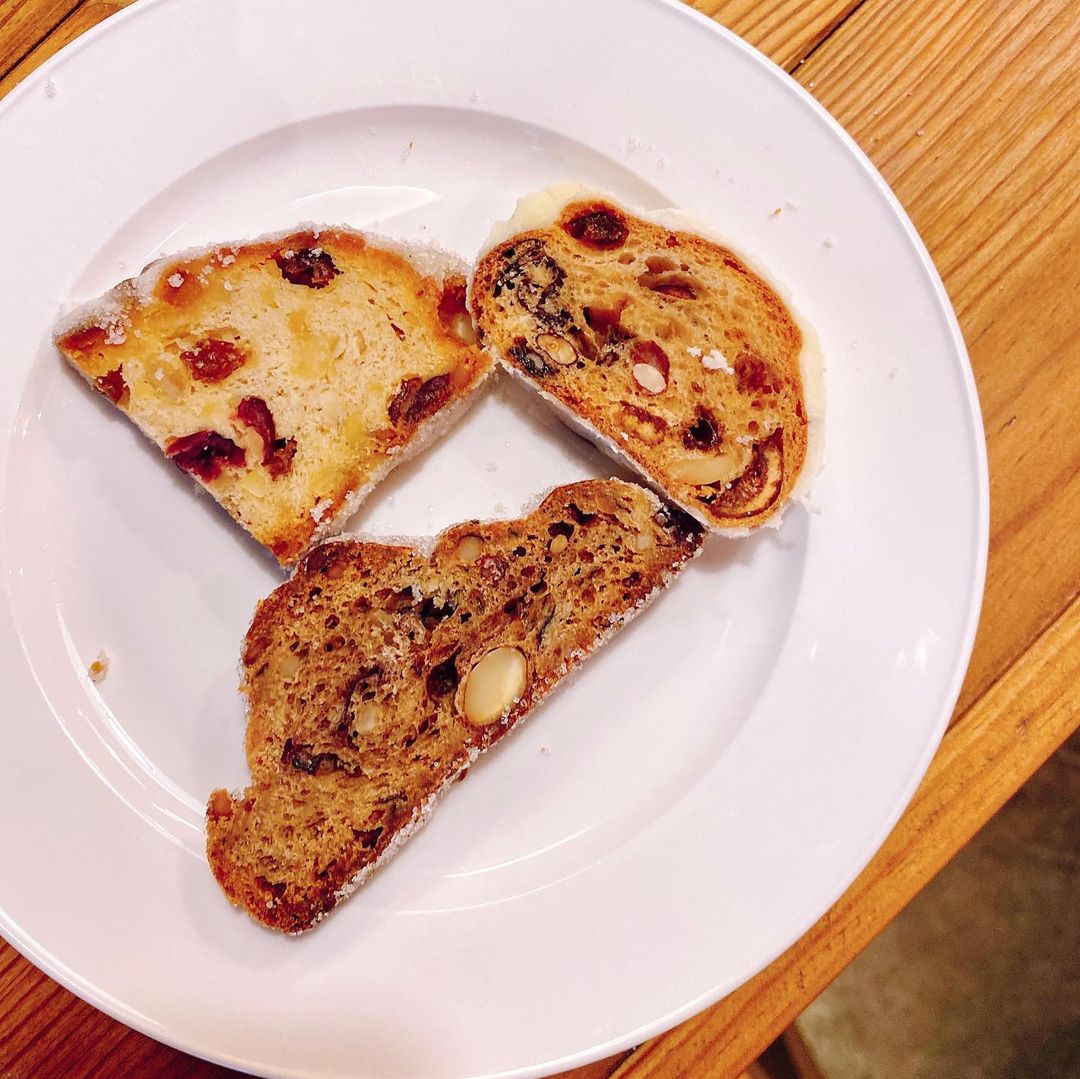写真にはないですが、山梨のmeganeのシュトーレンはユニークかつインパクトも強いものでした。表面には粒子の細かいクランブルクッキーのようなものがまぶされ、いくつかのスパイスも香ります。ワインにも合いますし、これは特に来年も食べたいと思いました。