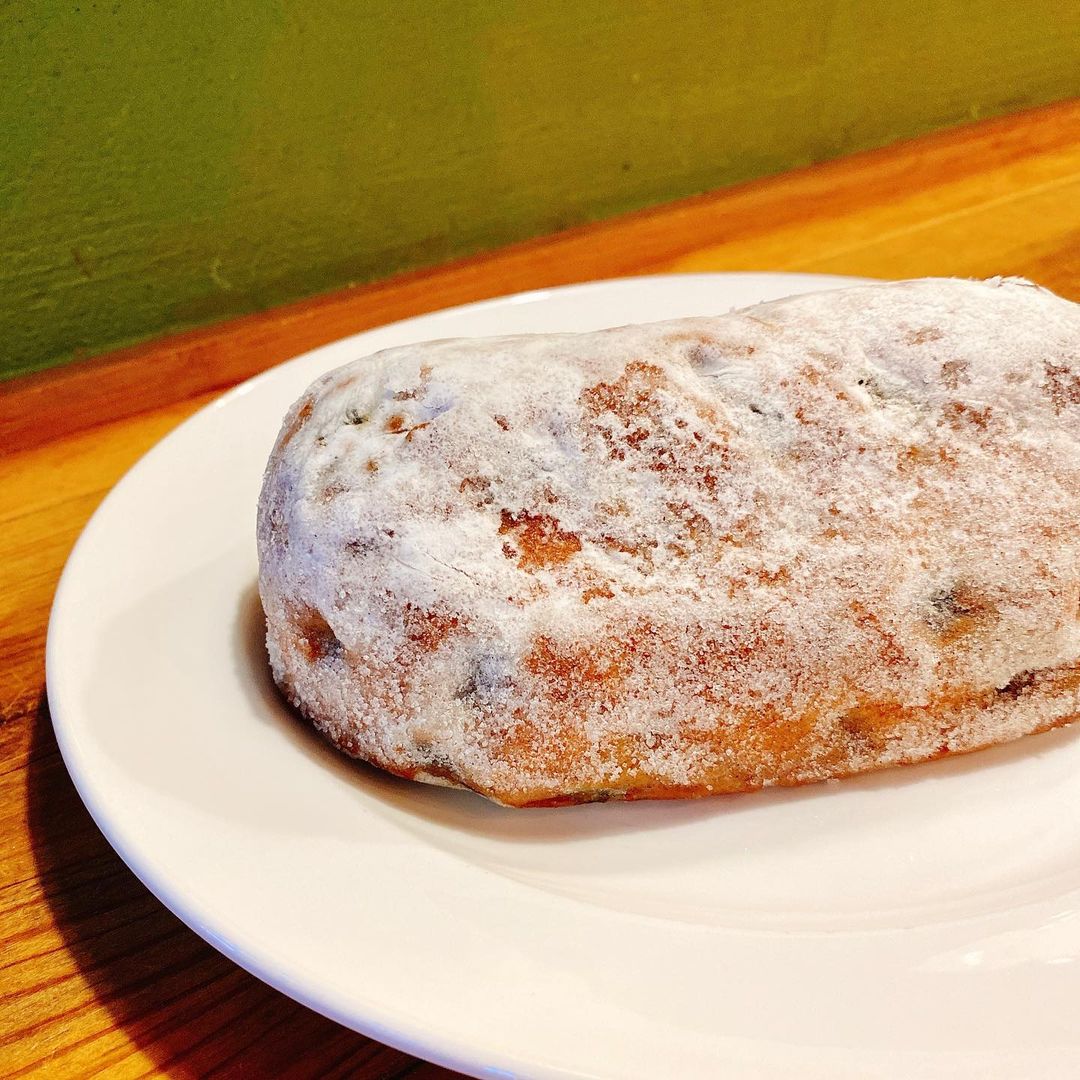 7、8、9枚目の写真はそれぞれFobs、Ensia.、粉花です。Fobsのシュトーレンは表面のコーティングの層が厚くて柔らかく、粉糖の粒子が細かく口当たりも見た目もキレイですよね。Ensiaのものは表面からドライフルーツの粒が見え、見た目としてシュトーレンらしいもの。粉花のものはコーティングが硬めでザリッとした食感。味としてはドライフルーツと重たい生地、砂糖という共通項があるため大きくはブレないものの、その中でそれぞれの目指す形はやはり多様です。