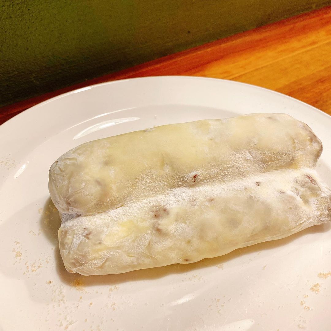 まずは千鳥饅頭総本舗のシュトーレン(3枚目)。こちらと次に食べた https://www.instagram.com/cookiegirl5084 のメルローのシュトーレンは表面にグラニュー糖のように粒の大きい砂糖をまぶしてあるタイプです。千鳥饅頭のものはパウンドケーキ寄りで、Cookiegirlのものはかなりザクッとした食感で、今回集めたもののなかでは若干ユニークです。